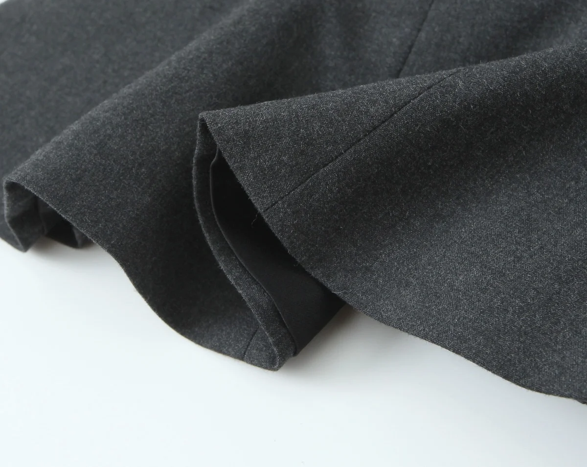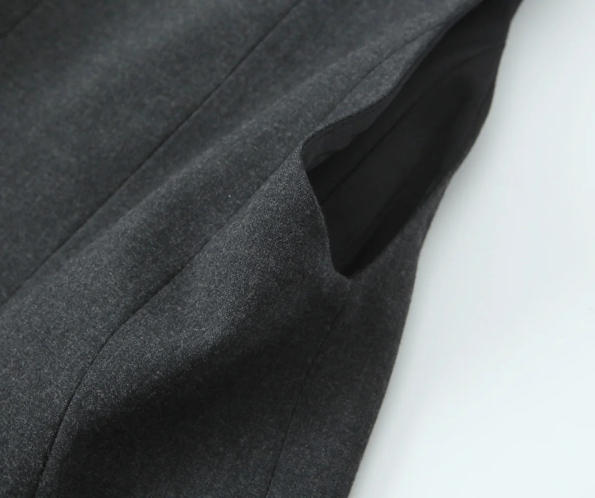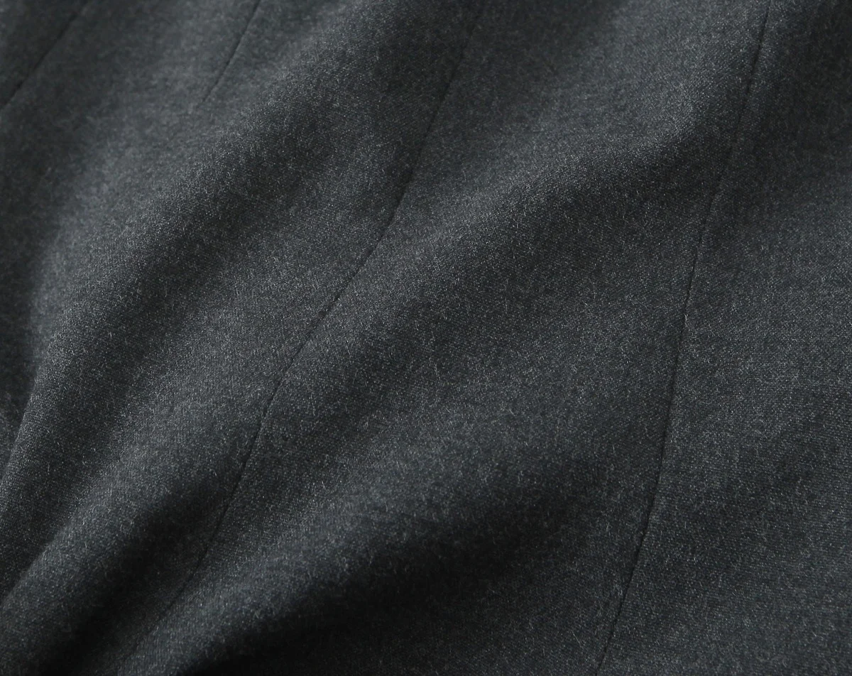 Available in navy pinstripe, charcoal grey, and deep wine black.